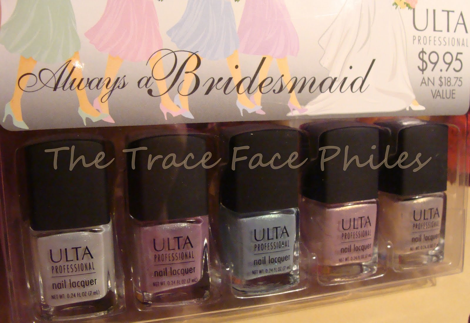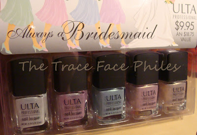 Always a Bridesmaid set from Ulta. They are minis of the larger Ulta bottles. So cute. I used a $5 coupon on this, so it was $5! These are actually shimmery and duochromey. Very beautiful in person! I will swatch these for you soon.