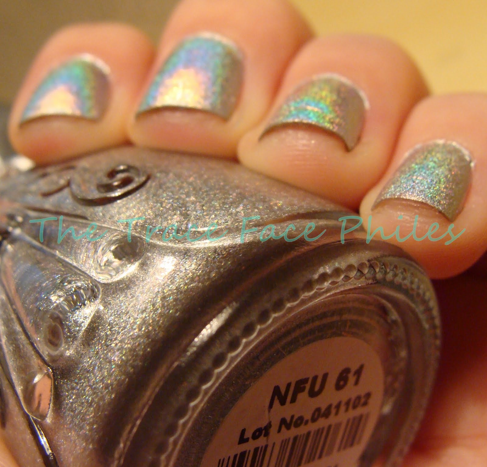 - NFU OH Aqua Base IS NOT necessary!! I did not purchase it because it was out of stock (surprise!). I also wondered if it was really required with the NFU OH holographics. It is not. I used a combo of Orly Tough Cookie with OPI Ridge Filler over top. Then applied 61 over that. I also tried Orly Bonder on my ring finger by itself and then applied 61.