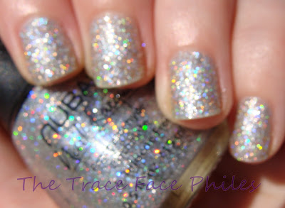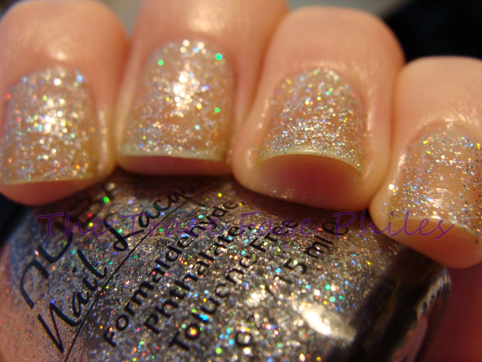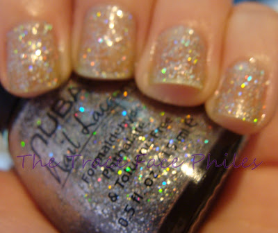 Nubar Star Sparkle is another one of the lovely polishes that Nubar was kind enough to send me for review. It is one of my favorite kinds of nail polish too...holographic glitter! Nubar Star Sparkle is a dense glitter packed into a clear base. There are two different size glitters inside which are silver with a rainbow flash. Application was very easy and the glitter cover well with even one coat! Here are some photos with only one coat of Star Sparkle...