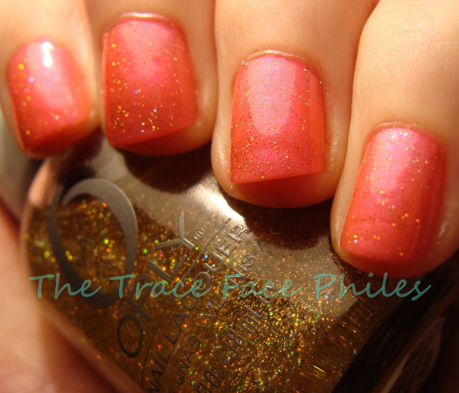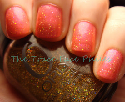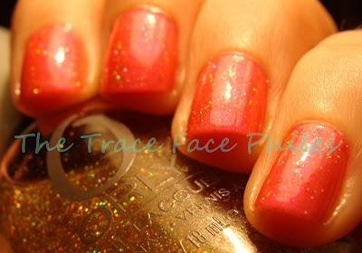 To add some glitz, I decided to try out Orly Prisma Gloss Gold. It is a holographic scattered glitter with a gold hint to it. I added 2 coats.