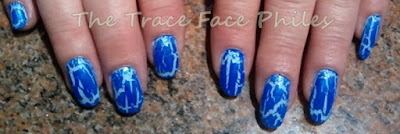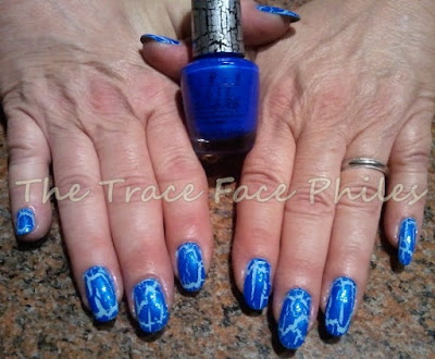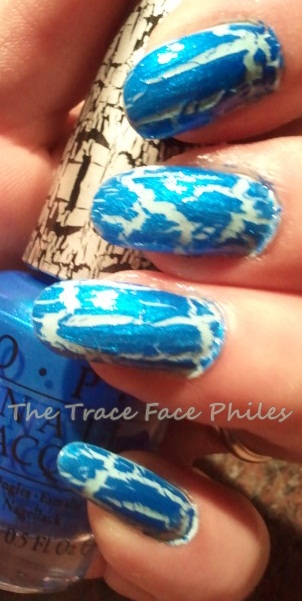 After one coat of Essie To Dry For, I added 1 coat of OPI Blue Shatter.