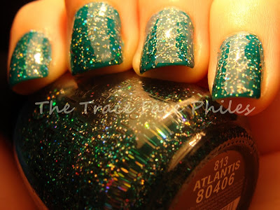 Finally I get to try out Atlantis. It has been sitting in my untrieds for quite some time. I kinda forgot about it, lol shame on me! I thought it would look great layered over yesterday's post Milani Fresh Teal. I was right! Its a great combination! I added 2 coats of Atlantis to the existing 2 coats of Fresh Teal. Followed by 1 coat of Gelous and then 1 coat of Orly Wont Chip.