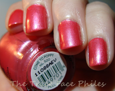 Come to Poppy was easy to work with. It went on smoothly; it is a thick pearly polish and it covers well.