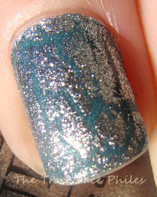 I added a coat of OPI Silver Shatter to the Butter London Victoriana mani I showed you yesterday. I love these two colors together! So sparkly! OMG